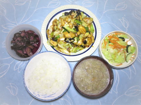 | 12日(金) スパゲッテイーナポリタン(残り)+野菜たくさんサラダ +カマンベールチーズ+トースト+牛乳♪ ![]() ガーリックバターチキン炒め(カリバタチキンの素・鶏もも肉 ・長ネギ・キャベツ・ピーマン・ニラ・キクラゲ)+豚汁(豚肉 ・玉ねぎ・ニンジン・椎茸・ゴボウ)+炊きたてご飯 +サラダ(残り)+サンマの甘露煮+しば漬け♪ ![]() |