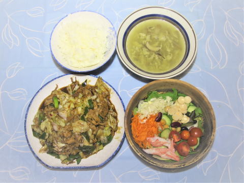 | 20日(土) 目玉焼き(卵・ハム・ベーコン・ウインナー)+野菜サラダ +帆立とコーンの中華風スープ(残り)+トースト+バナナ+牛乳♪ ![]() なめこと大根おろしかけ豆腐♪ ![]() 具だくさん回鍋肉(回鍋肉の素・豚肉・キャベツ・タマネギ ・ピーマン・長ネギ・椎茸・キクラゲ)+なめこの味噌汁 (なめこ・大根・椎茸・油揚)+納豆+3種のぬか漬け+ご飯♪ ![]() |