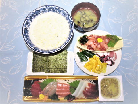 | 19日(金) 天ぷら定食(海老2本・穴子・イカ・カボチャ・茄子・獅子唐) +刺身(赤身・ブリ・サヨリ)+味噌汁+しば漬け+大盛りご飯♪ ![]() |
