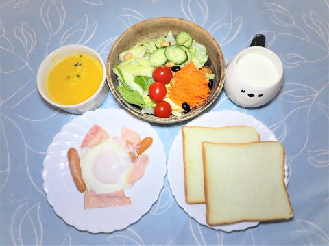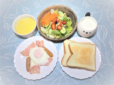| 11日(木) 目玉焼き(卵・ハム・ベーコン・ウインナー)+野菜サラダ +コーンスープ(インスタント)+トースト+牛乳♪ ![]() 豚肉とピーマンの甘辛炒め(レトルトソース・豚肉・ピーマン ・白菜・玉ねぎ・ぶなしめじ)+ポトフ(残り)+炊きたてご飯+あさりの佃煮♪ ![]() |