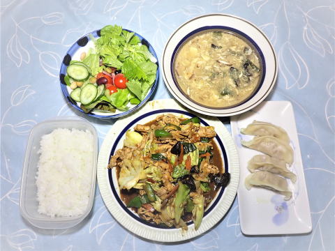 | 14日(日) 鶏とカシューナッツの炒め定食(ご飯大盛り)♪ ![]() 回鍋肉(回鍋肉の素・豚肉・キャベツ・ピーマン・長ネギ ・キクラゲ)+椎茸と鶏肉の中華風スープ(スープの素・椎茸 ・キクラゲ・ワカメ・卵)+具だくさんサラダ+ご飯+キムチ♪ ![]() |