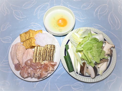| 19日(金) ちゃんぽん麺(ちゃんぽん麺生・豚肉・焼き豚・冷凍エビ,イカ,アサリ ・キャベツ・ニンジン・タマネギ・椎茸)♪ ![]() 鍋の具材♪ 鶏すき焼き(鶏もも肉・手羽先・三角揚げ・焼き豆腐・しらたき ・白菜・長ネギ・椎茸・エリンギ)+生卵+玉うどん♪ 鶏すき焼き♪![]() |