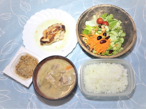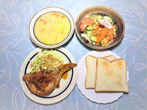 | 26日(金) マグロとろろ丼+かけ蕎麦大盛り♪ ![]() 骨付き鶏もも肉の照り焼きチキン風味 (骨付き鶏もも肉 ・照り焼きチキンソース・キャベツの千切り)+濃厚クリームシチュー(残り) +具だくさんサラダ+トースト♪ ![]() |