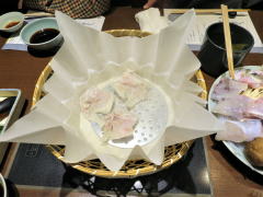 | 30日(火) ビーフカレー(残り・ご飯)+野菜サラダ+豚汁(残り) +野沢菜漬け+カツオたくあん♪ ![]() 20年以上続いている忘年会に行ってきました。 国産泳ぎとらふぐコース 泳ぎてっさ(とらふぐ刺身)…写真を撮り忘れました(^_^;) ふぐの皮の刺身♪ トラフグの唐揚げ♪ ![]() ![]() 泳ぎてっちり(とらふぐ鍋)♪ ![]() ![]() なべ皮♪ 雑炊♪ ![]() ![]() 最中アイス♪ 二次会でビールを飲んできました♪ ![]() ![]() ハーフアンドハーフビール♪ ポテトフライ+その他♪ ![]() ![]() |
