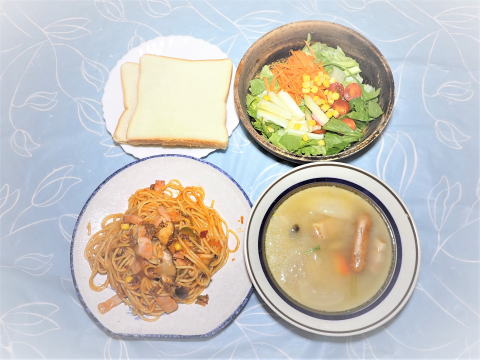 | 1日(月) 目玉焼き(卵・ハム・ ベーコン・ウインナー)+野菜サラダ +カマンベールチーズ+カボチャのポタージュ+トースト+牛乳♪ ![]() ソース焼うどん(玉うどん・ソース焼きそばのタレ・挽肉 ・笹かまぼこ・キャベツ・ピーマン・玉ねぎ・もやし)♪ ![]() チキンカレー(残り・ご飯・目玉焼き)+コーンスープ(残り) +具だくさんサラダ+ちょい辛胡瓜と茄子の漬物 +野沢菜漬けと梅ひじき♪ ![]() |
