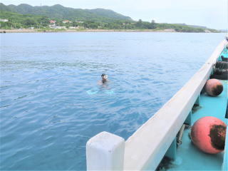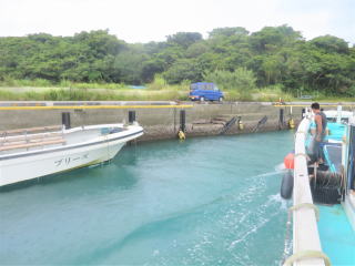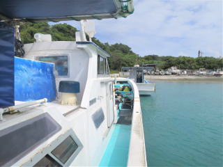 8時過ぎにファミマで弁当を買って、8時15分頃港に着いた。乗る船はまだ来ていなかった。機材を下ろして準備して、船がやってきて8時半頃ろ器材を乗せた。少し若い外人さん夫婦がいた。インストラクターの女性は英語が話せて、華奢な髪の長い子だった。綾人くんとは初対面?のようだった。