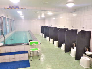 シャワーを浴びてさっぱりしてから、器材を洗って廊下のベランダに干した。6時過ぎに全部干し終わって、10分頃から大浴場に行った。今日は誰もいなかったので写真を撮った。頭と体を洗ってゆっくりした。