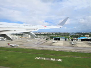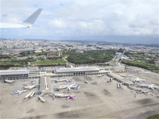 8時50分バス停に着いた。9時7分バス発(12分遅れ)→9時43分伊芸サービスエリア発(10分遅れ)→10時8分琉大入口発(10分遅れ)→11時7分那覇空港国内線着(17分遅れ)。ちょっと遅れた程度で到着した。