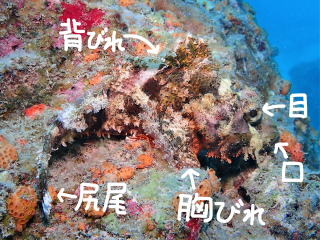 オニオコゼが完璧に擬態していた。なかなか危ない位置にいた。ツバメガイやオビテンスの子供もいた。