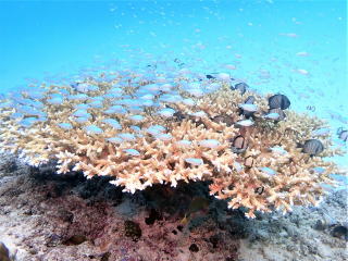 10時過ぎに船に戻ったが、船酔いをしている感じで、 結構気持ち悪かった。水を飲んだりして様子を見た。次のポイントの瀬底島に移動して少し休んだ。おば様から「どうしたら息が長く続きますか?」と聞かれたが、たぶん酸素の消費量だと思った。考えたが「こつはないです」と答えた。「ただ楽しく潜ることです」と話した。細かなことを言うよりも良いと思った。