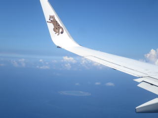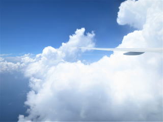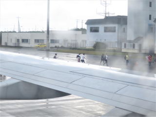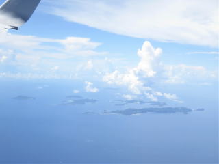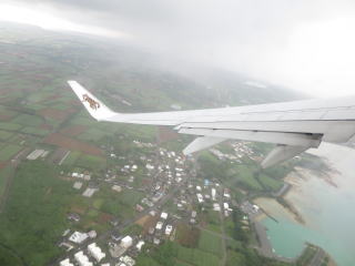 10時38分機内着席→今まで雨が降っていたようでした。45分ドア閉まる→47分動く→ 非常用設備についての説明→50分滑走路の端っこまで移動→57分離陸→雨雲の中を通過→11時雲の上に出る→多良間島は見えなかった→今日の「日記」を書いていた→