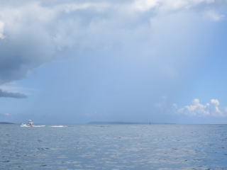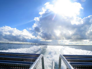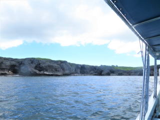 8時25分頃港に着いて器材の準備をしました。今日は新しく良く喋る2人のおば様がいて、仲の良い友達同士らしく 帽子やイナーはペアルックでした。今回は船の奥で1人で準備しました。8時半前に出港して船の後ろに行って、いつも通り陽に焼きながら写真を撮りました。