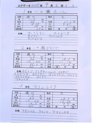 今日潜ったデータです。