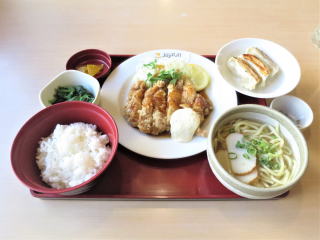 5時半前に買い物と食事に出かけました。いつもの繁華街の所のファミマで、冷やしうどんを探しましたがありませんでした。先に5時50分前にJoyfulに入って食事をしました。 チキン南蛮定食(チキン南蛮・ミニ宮古そば・餃子3個・ほうれん草のお浸し・つぼ漬け・ご飯) 普通に美味しかったです。