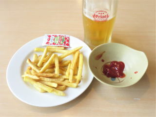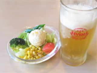 4時50分過ぎにJoyfulで食事をしました。少しずつ注文する事にしました。ビールのつまみであまり良い物がなかったので、ミニサラダを食べながら飲みました。2杯目のビールは、ポテトフライを頼んで食べながら飲みました。5時45分頃からメインの食事を食べました。 チキンステーキとご飯セット 普通に美味しく食べました。沖縄感はなかったですネ(*^_^*)♪