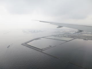 2時42分鴨川の南辺りから房総半島に入った。雲があって下が全然見え なかったが、49分頃急に袖ケ浦辺りから東京湾に入った。そのまま直進して川崎浮島ジャンクション辺りから、羽田空港の誘導灯に従って、2時53分頃着陸しました。外はだいぶ雨が降っていました。