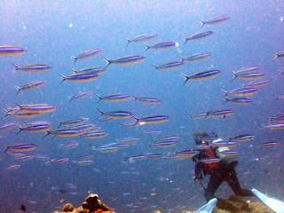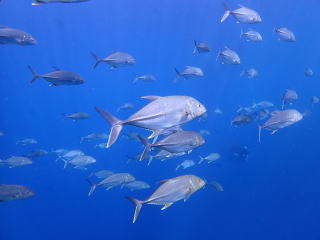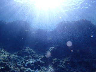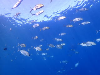 天気が良かったので差し込む光のスジが綺麗だった。オニヒラアジとスマガツオがいて面白かった。