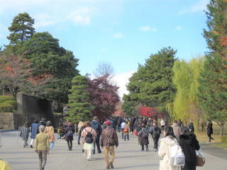 | 12月 5日(金) 快晴♪ 昼:11℃~12℃ 湿度:およそ39% 今日は頑張って皇居まで行ってきました。「乾通りの一般公開」をやっています。去年も行ったんですが、なかなか入れないですからね。またまた「秋・冬のオニ散歩」のページを作りましたので、見てやって下さいm(_ _)m♪ 今回は東京駅から皇居に行って、乾通りを通って紅葉などを楽しんできました。その後「乾門」を出て、交差点を渡って「北の丸公園」まで行ってみました。まあ普通の公園なんですが、「武道館」の前を通って「田安門」を通って「千鳥ヶ淵」を見て、「靖国神社」の大鳥居を見て、飯田橋駅まで歩いて行きました。ん~「乾通り」に入ってから「飯田橋駅」まで、約1時間以上歩きました(^_^;)