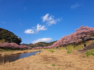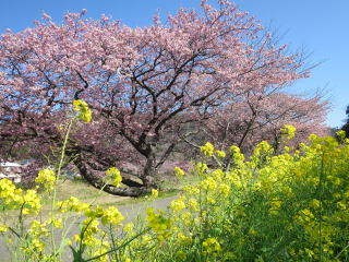 | 2月15日(日) 快晴♪ 昼:15℃~16℃ 湿度:およそ59% 今日は朝5時に起きて、6時の電車に地元の駅から乗って、9時20分頃伊豆急下田駅に着きました。ずっ~と各駅停車の普通電車に乗って行ってきました。予定通り下田駅からバスに乗って、「みなみの桜」がある青野川の土手に10時前に着きました。 たくさん写真を撮って、ワイドの写真や動画も撮ってきました。11時からは「伊勢エピの味噌汁」を無料で飲んできました。ちゃんと伊勢エビの出汁が出ていて、小さいながらも伊勢エビの殻と肉も入っていました(^_^)b♪ 帰りは川の下流まで歩いていって、「菜の花畑」で写真を撮って帰って来ました。いつになるか分かりませんが、「オニの春散歩」のページを作りますので、見てやって下さい。