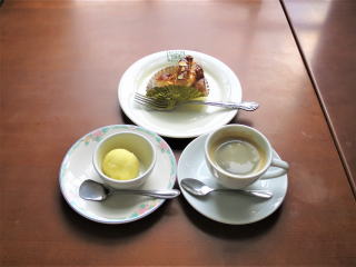 | 2月11日(水) 曇り/雨 昼:5℃~7℃ 湿度:およそ85%(横浜) 弘前:最高気温5℃ 昨日はまたたくさん歩いてしまいました。2万4956歩あるきました。今朝はまた筋肉痛と疲れで、起きるのがしんどかったです。 今日はお洒落な昼食を食べてきました。少し前にテレビで弘前のことをやっていて、弘前城公園の近くに、歴史的建造物の「旧東奥義塾外人教師館」と言うのがあります。その名の通り外人の教師が住んでいた洋館です。青山学院大学の先生も務めていた方もいたようです。弘前に「りんご」を紹介したのも外人の先生らしいです。 その1階に昔風のカフェがあります。「salon de cafe Ange」と言います。中に入ると…本当にタイムスリップしたかのような雰囲気のあるお店で、ウエイトレスさんも昔の「女性の給仕さん」が着ていた、白いエプロン姿なんです。とっても品のある方でした。中に入ると自然に声が小さくなってしまいました(*^O^*)♪ お腹が減っていたので、津軽限定リンゴ「栄黄雅」のリンゴカレーセットと、お目当てのアップルパイを頂きました。セットには冷静ヨーグルトスープとサラダとエスプレッソコーヒーが付いていました。