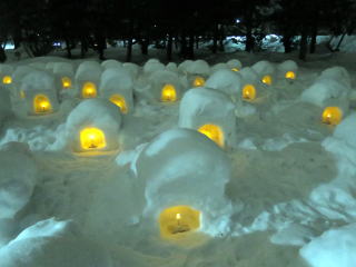 アップルパイにエスプレッソコーヒーは合いますネ(^_^)v♪ 優雅にお昼を頂きました。その後駅前まで行って、地元の方に人気のヤマモト食品の ①「味よし」:昆布・キュウリ・大根の漬物 ②かくみつ食品(弘前市)の玉子とうふ-具だくさんの甘めの茶碗蒸し風玉子豆腐で鶏肉・しいたけ・筍入り ③源たれ:焼き物のタレ ④青森ニンニク焼き肉のタレ を買ってきました。焼き肉のタレ2本は多かったかもしれません(^_^;) その後一旦ホテルに戻って6時頃から弘前公園に行って、「プロジェクションマッピング」と「300基のミニかまくら」を見て、帰りに居酒屋に寄って良い気分で帰って来ました(^_^)b♪