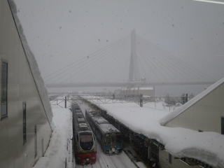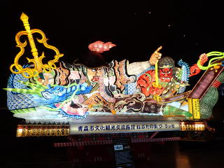 | 2月12日(木) 快晴♪ 昼:10℃~10℃ 湿度:およそ45%(横浜) 弘前:最高気温1℃ 今日は青森空港の6時半頃の飛行機で帰るので、お昼前に青森駅に行ってきました。弘前からJR奥羽本線に乗りました。どんな電車かというと…2両編成のレトロ電車=千葉のいずみ鉄道を思わせる電車でした。イメージが全然違いました。 1時間ほど乗って青森駅に着いたら…猛吹雪でした!!本当に吹雪きっっっっって感じで、道を歩けないんです。でも「ねぶた会館」と「活彩市場」に生きたかったんですが、両方とも駅の近くにありました。まず「ねぶた会館」に行って、「らっせ!らっせ!」と飛び跳ねて、「市場」は…観光だけして…駅ビルの中の寿司屋で「にぎりランチ」を食べて、3時のバスに乗って青森空港に行きました。
