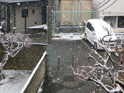 | 2月 8日(日) 雪/曇り 昼: 0℃~ 1℃ 湿度:およそ72% 昨晩からしっかり雪が降っていましたね。朝起きたら写真のようになっていました。でもよく見たら道路は全然積もっていなかったので、水分をたくさん含んだ「ぼた雪」のようです。