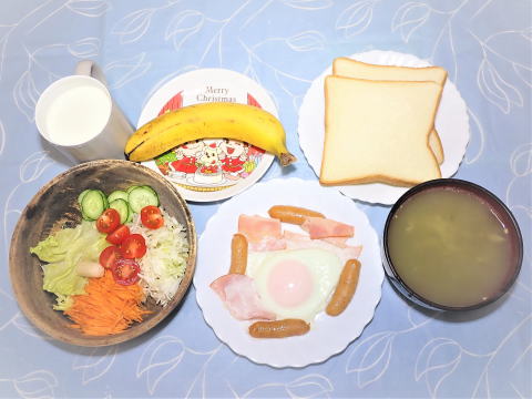 | 11日(木) 目玉焼き(卵・ハム・ウインナー)+野菜サラダ +カマンベールチーズ+ポタージュ(インスタント)+トースト+牛乳♪ ![]() 冷やしそう麺(揖保乃糸・野菜かき揚げ ・キュウリ・冷やしそうめん汁)♪ ![]() |