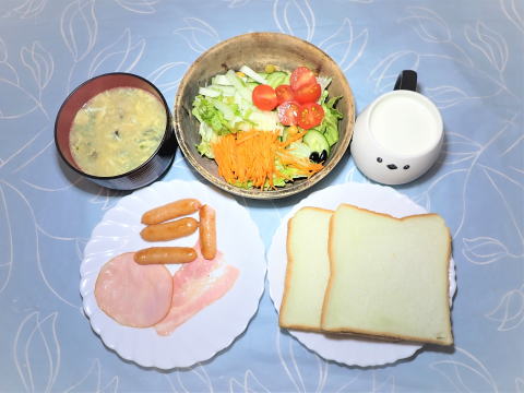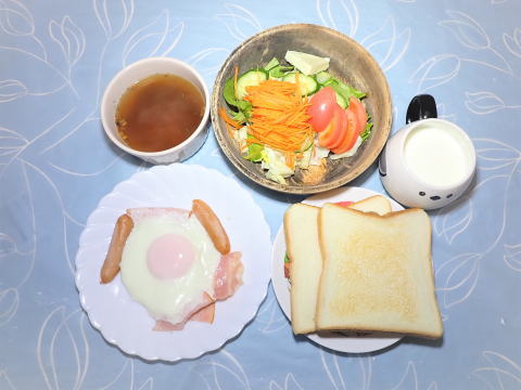 | 11日(木) 目玉焼き(卵・ハム・ベーコン・ウインナー)+野菜サラダ +コーンスープ(インスタント)+トースト+牛乳♪ ![]() 豚肉とピーマンの甘辛炒め(レトルトソース・豚肉・ピーマン ・白菜・玉ねぎ・ぶなしめじ)+ポトフ(残り)+炊きたてご飯+あさりの佃煮♪ ![]() |