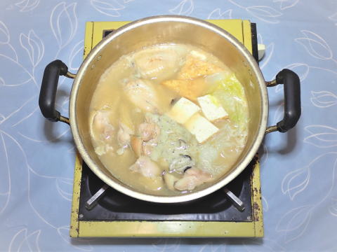 | 21日(日) ハム・ベーコン・ウインナー+野菜サラダ +中華風スープ(残り)+トースト+牛乳♪ ![]() 鶏鍋(濃厚白湯スープの素・鶏もも肉・鶏手羽先・三角揚げ ・焼き豆腐・しらたき・白菜・長ネギ・椎茸)♪ ![]() 牡蠣鍋(鶏鍋・牡蠣)♪ ![]() 雑炊(鶏とカキの鍋の出汁・卵・ご飯)♪ ![]() |