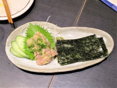 | 8日(月) 鶏もも肉の照り焼き(牛乳漬け)+野菜サラダ+豚汁(残り) +ご飯+納豆+刻み野沢菜漬け+梅ひじき♪ ![]() 野毛に飲みに行ってきました。 お通しと太しなちく♪ ![]() かに味噌♪ ![]() |
