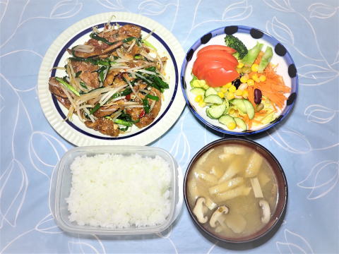 | 12日(月) 油淋鶏定食♪ ![]() レバニラ炒め(豚レバー・ニラ・もやし)+具だくさんサラダ +味噌汁(リメイク・油揚げ・椎茸・舞茸・出汁パック) +ご飯+野沢菜漬け♪ ![]() |