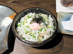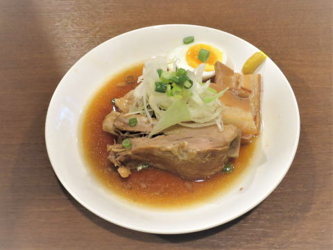 | 三角揚げすき焼き風丼(残り・生玉子)+3種のぬか漬け(大根・キュウリ・カブ)♪ |