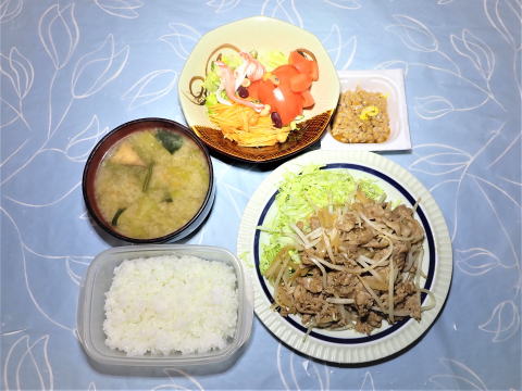 | 7日(水) 若鶏の半身揚げ定食+ビール2杯♪ ![]() 頂き物:海苔菓子 風雅巻き♪ ![]() 豚肉と野菜の生姜焼き(豚肉・タマネギ・もやし・キャベツの千切り) +具だくさんサラダ+味噌汁(残り)+納豆+ご飯♪ ![]() |