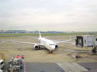 11時35分保安検査所を通って、40分頃バスで移動する28番ゲートに着いた。写真を撮って12時11分頃バスに乗って、17分頃着席した。後ろの方の席は空いていた。