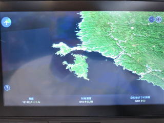 12時24分ドア閉まる→27分安全についての説明→29分動く→32分移動→12時40分離陸→雲の下高度300m位を飛行した。大きく旋回しないで慶良間諸島の西側を通って、粟国島・渡名喜島の東を飛行した。すぐに久米島のハテの浜が見えた。12時49分頃慶良間諸島の北・久米島の南側を大きく回り込んで飛んでいた。ネットで雲の様子を見たら、雨雲を避けて飛んでいるんだろうと思った。