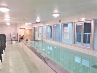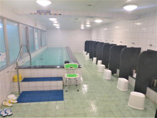 シャワーを浴びてさっぱりしてから、器材を洗って廊下のベランダに干した。6時過ぎに全部干し終わって、10分頃から大浴場に行った。今日は誰もいなかったので写真を撮った。頭と体を洗ってゆっくりした。
