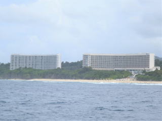おば様に中性浮力のこととフィンキックの回数の話をした。一旦港に戻った。瀬底島のヒルトンホテルの海岸に人がたくさんいた。金持ち?がたくさんいるなぁと思った。12時10分頃港に戻って、弁当と結束バンドを持ってきた。12時20分に出航した。わざわざ港に帰る必要がない気もした。