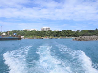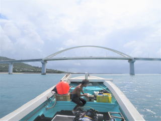 楽しんで4時15分過ぎに船に戻った。器材を片付けて4時20分頃港に向けて出航した。瀬底大橋をくぐって4時40分前に港に戻った。