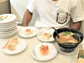 私は熱燗と寿司を普通に注文して食べていたら、綾人くんもたくさん食べていて、よく見たらサーモンとエビばかり16皿位食べていた。ん〜魚も偏食なんだと思った。2人で30皿位とラーメン2杯と茶碗蒸しを食べた。