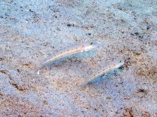 水深3m〜5m位は久しぶりに透明度が最悪だった。7m〜8mまで潜ると視界が開けてきた。マスクのベルトがちょっと緩くて、海水がだいぶ入ってきた。砂地にある根を見ながら移動した。根にはスカシテンジクダイとかがたくさんいた。なかなか楽しめた。女性が浮き気味だったので、インフレーターの排気ボタンを教えたが、エアーは出てこなかった。ウエイトが軽いようだった。浮いて行きそうになったので手を引いて海底まで誘導した。石を持たせようと思ったが、余計なお節介かと思って渡せなかった。安全停止に入った時、目まいがして気持ち悪くなってしまった。