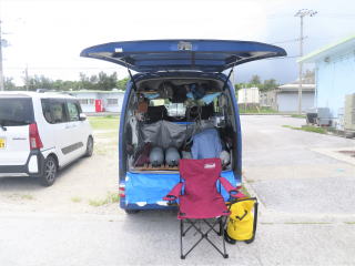 港に戻って車 のハッチバックを開けて、イスを用意してもらってくつろいだ。