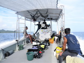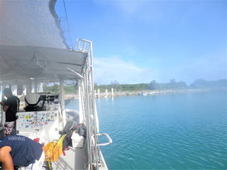 2時20分過ぎに港を出たが、忘れ物をしたようで港に戻ってまた出発した。 明日器材を洗ってもらう事にした。ホテルには干すところがないし、濡れたメッシュバッグを持ってフロントを通るのは気が引けた。結局明後日の朝フロントに届けてもらうことになった。