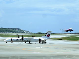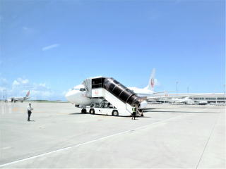 充電ステーションで充電しておいて、写真を撮りに行った。羽田行きの直行便はまだ着いていなかった。飛行機の中で食べるサンドイッチを買って自分用のお土産で、テビチ・三枚肉・ソーキを買った。それほどゆっくりしていられなくて、9時50分頃手荷物検査所を通って搭乗ゲートに行った。