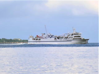 2時10分頃準備が出来て、おり姫のお父さんにメールした。2時15分過ぎ桟橋で並んだ。大きな船の「いりかじ」だった。2時30分頃八重山観光の船より先に出港した。