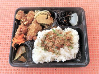 11時過ぎに船に戻った。いろいろ見られて楽しかった。タンクにチャージをしながら、11時半頃から弁当を食べた。 鶏の油淋鶏弁当 肉が軟らかくて美味しかった。食後にカットパイナップルを出してくれた。