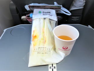 10時58分下地島上空→11時6分コンソメスープをもらってサンドイッチを食べた。 トリプルミックスサンド+コンソメスープ →11時12分久米島→16分ケラマ諸
