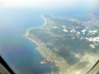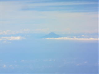 12時44分富士山が見えた。静岡市付近?を飛行→伊豆や大島も見えなかった。52分新島・利島・富士山の写真が撮れた→12時59分房総半島の先端