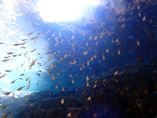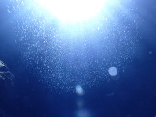 天気が良かったので差し込む光のスジが綺麗だった。オニヒラアジとスマガツオがいて面白かった。