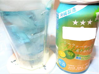 グラスに注いでみると…青い色をした「ビールテイストのカクテル?」でした。まあ青色のカクテルと言えば、「ブルーハワイ」があるので、似たようなもんかなぁ~って思って飲んでみました。 ??(??ω??)?? ガガガ━Σ(ll゚ω゚(ll゚д゚ll)゚∀゚ll)━ン!!! 三口飲んで…捨てました(*_*)
